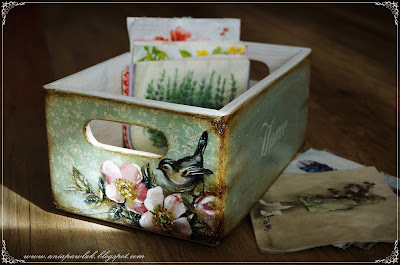 Świetna skrzyneczka!! Moje serwetki są ładnie upchnięte w olbrzymiej takiej skrzynce, którą od 1,5 roku jeszcze nie pomalowałam!! Pozdrawiam i zapraszam do mojego Candy :)
